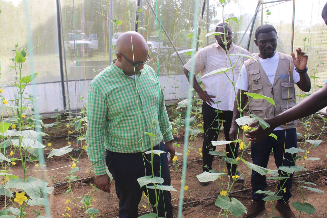 The United Nations Resident Coordinator in Ghana, Mr. Zia Choudhury, has paid a visit to Kokoo Pa greenhouse demonstration site at Mankranso in the Ashanti Region as part of his working visit of farming communities supported under the Forest and Farm Facility (FFF) project.